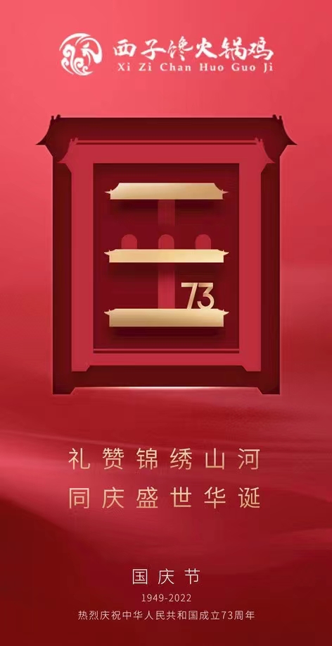 以匠心出品,致國之良辰 西子饞火鍋雞 熱烈慶祝祖國73歲華誕 愿祖國國泰民安、繁榮昌盛